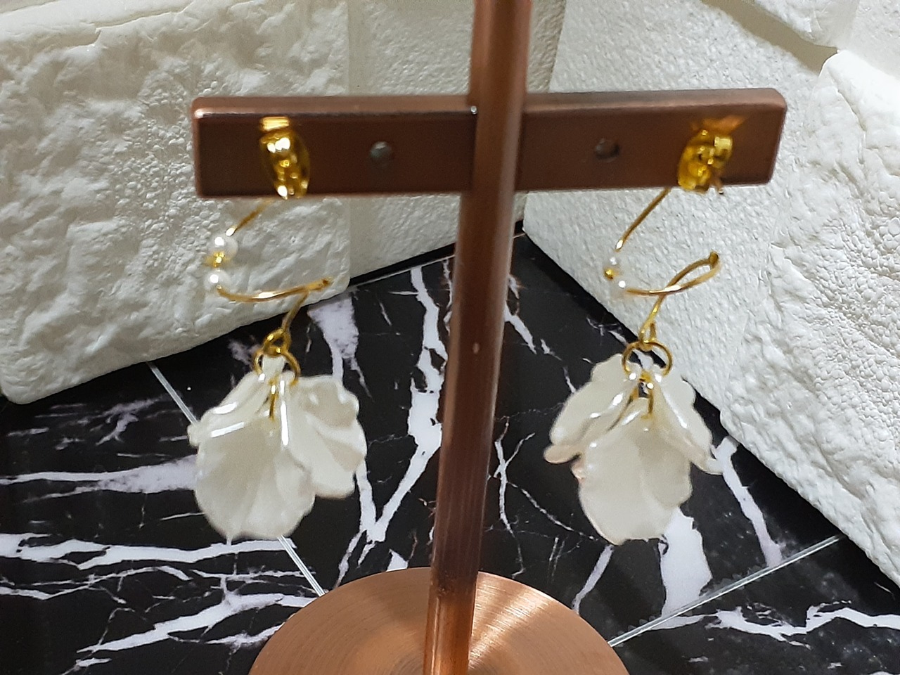 【yasuko様専用】ワンコインセール/花びらホワイトねじれ/ゴールドパールピアス
