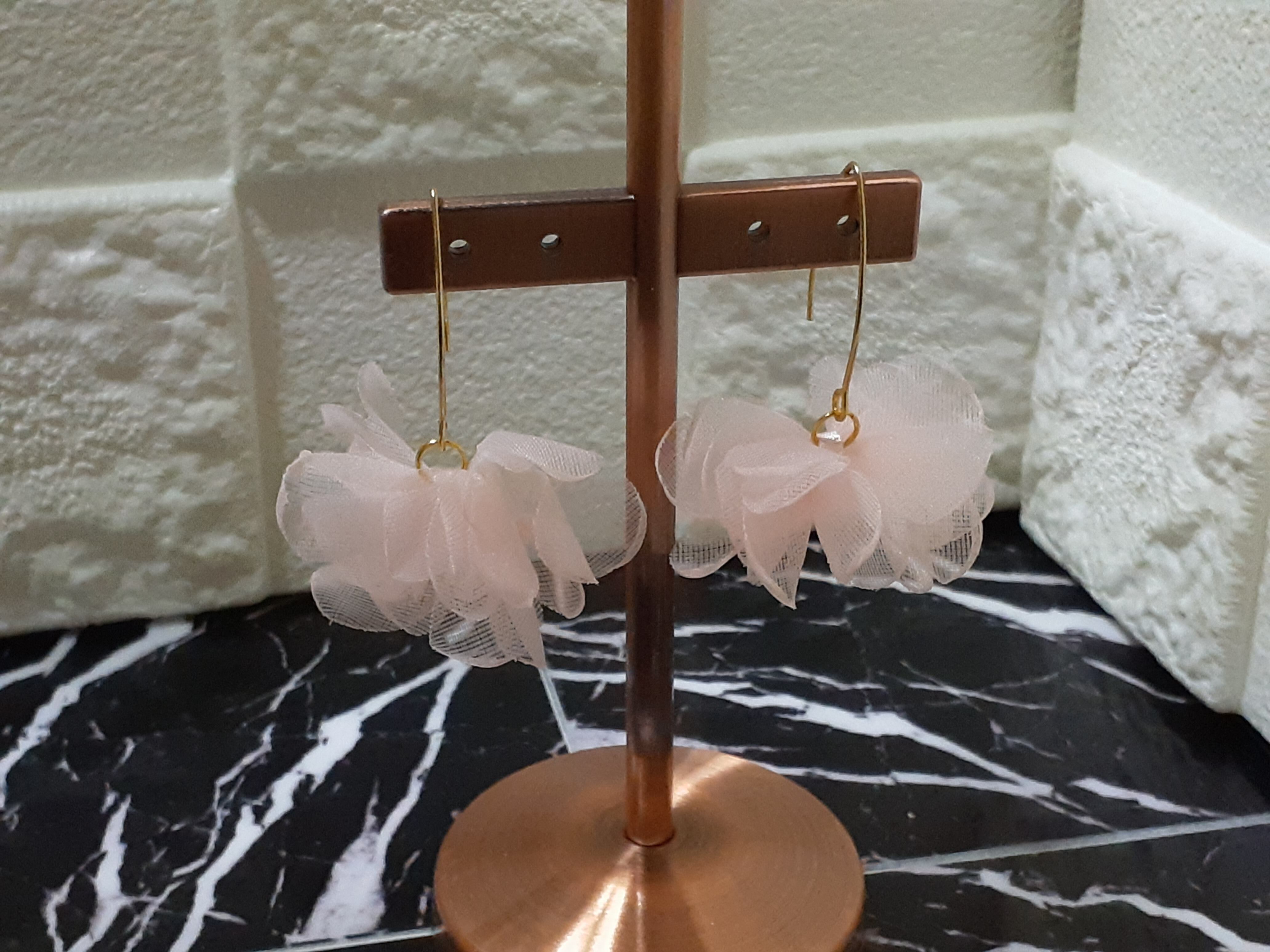 ピンクフラワーリボンブーメランフックゴールドピアス/サージカルステンレス316