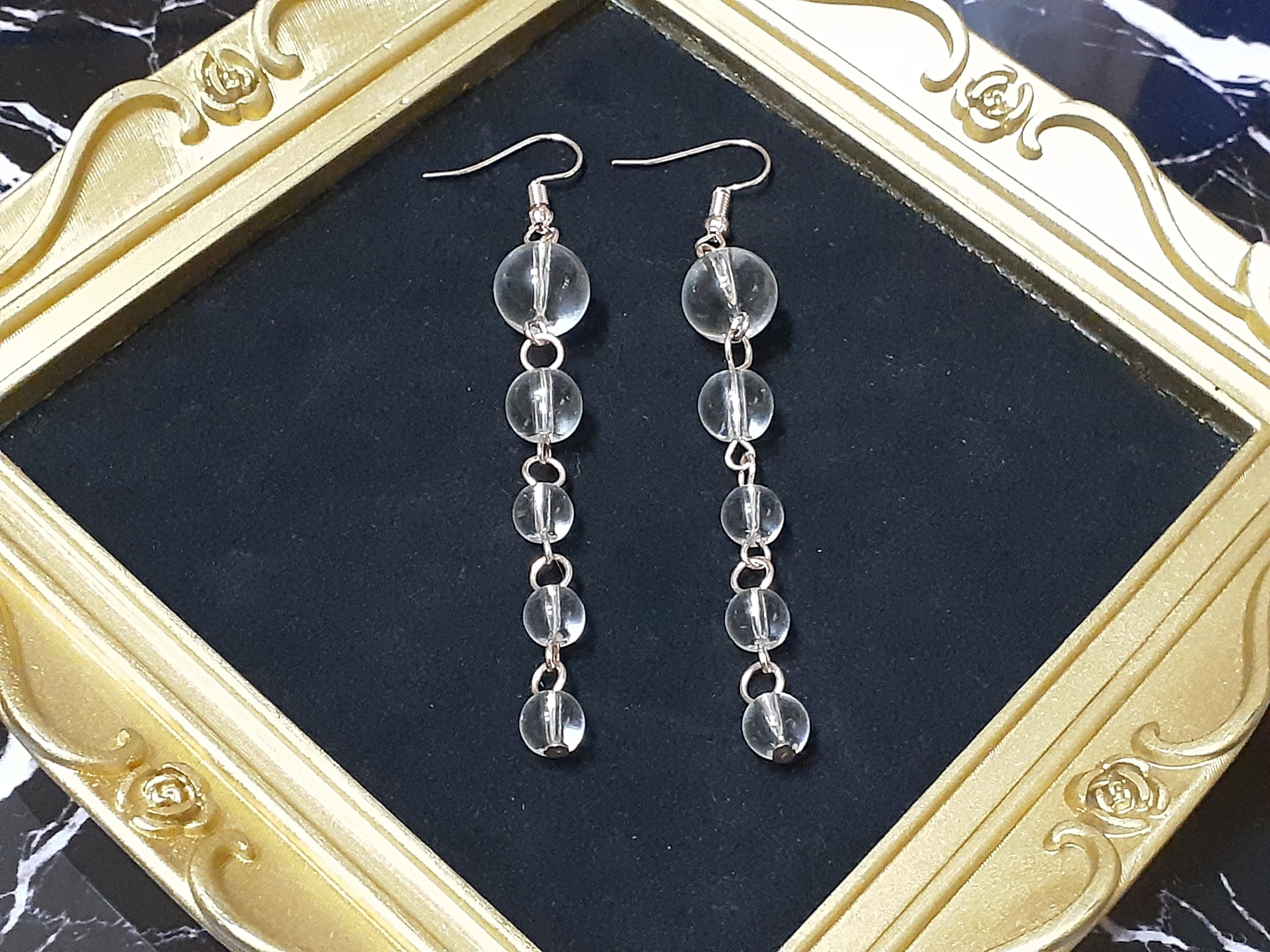水晶10㍉+8㍉+6㍉五連ピンクゴールドピアス
