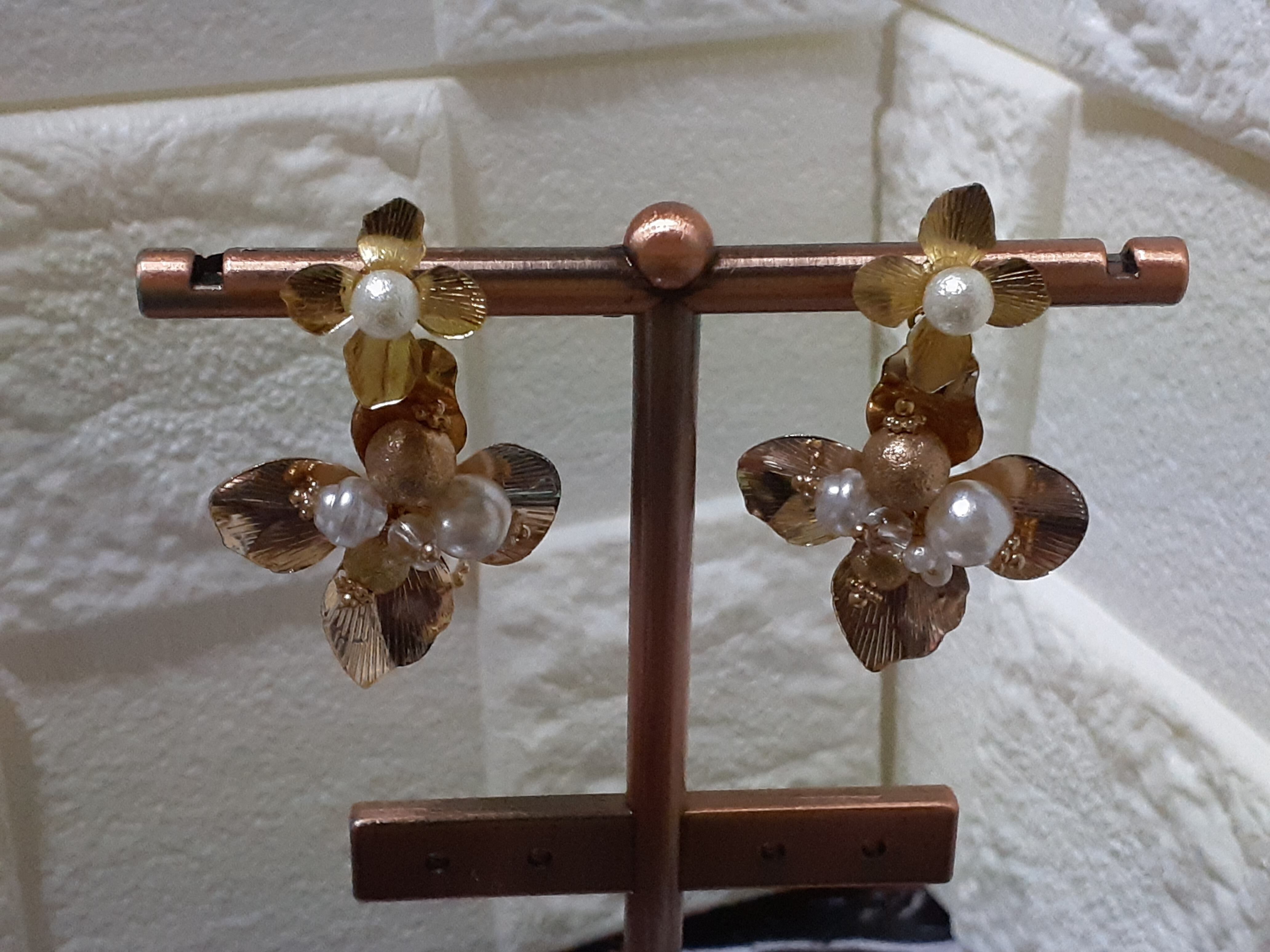 商品名:Wメタルフラワーボールキャッチデザインピアス